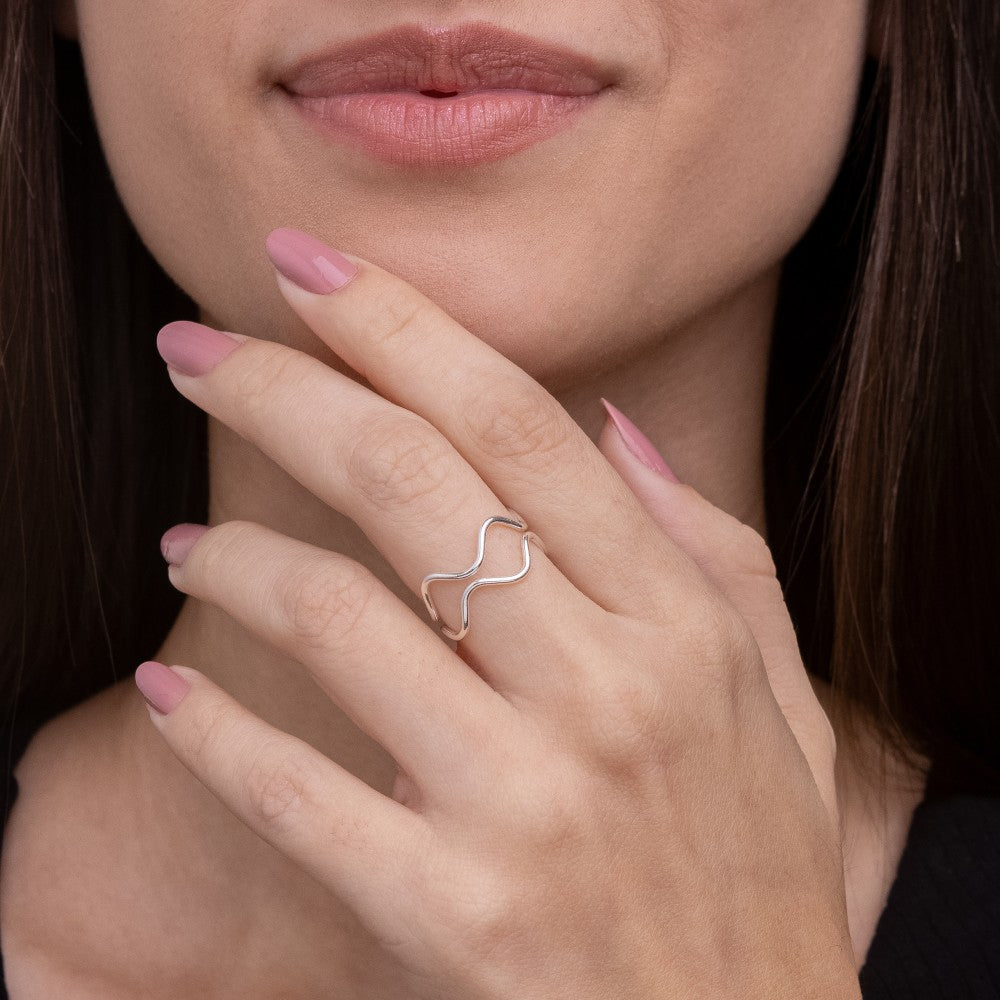 Dois fios de prata que dançam como ondas gêmeas ao redor do seu dedo. Este anel não é apenas uma joia — é um ritmo visível, uma maré pessoal que sobe e desce com seus movimentos. Para quem entende que a vida é feita de ciclos, fluxos e a beleza suave de começos que se repetem.
