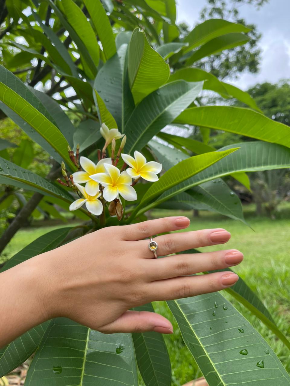 Mais que um anel, este é um oráculo de luz para suas mãos: cada pedra natural foi selecionada para compor a energia que você carrega. O citrino traz a abundância do sol, a granada acende a coragem do fogo interior, a ametista oferece a serenidade da sabedoria e os topázios iluminam com clareza seus caminhos - todas cravadas em prata para flutuar como constelações particulares ao redor do seu dedo, numa celebração artesanal que irá transformar as vibrações que chegam a você.