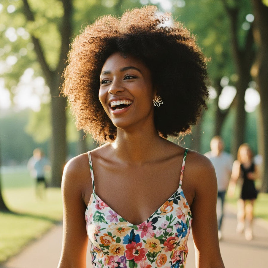 Uma flor que não desabrocha no jardim, mas na curva da sua orelha. Suas pétalas são perfeitas — são vivas, desenhadas à mão como a natureza desenha as suas: únicas, sensíveis, cheias de personalidade.